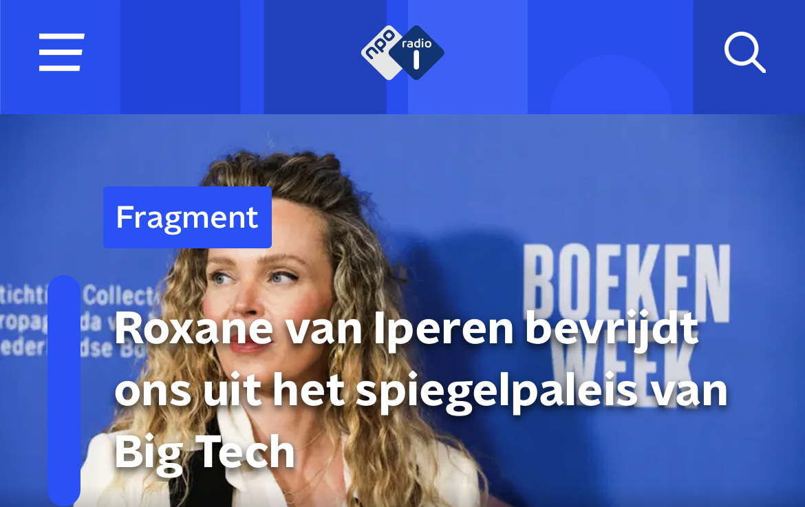 Max Nieuwsweekend, 28 maart 2026. We leven in een tijd leven waarin iedereen via sociale media zijn eigen wereld kan creëren. Techbedrijven hebben zo onze gedeelde werkelijkheid en sociale cohesie afgebroken. Met minimale inspanningen houdt Big Tech ons gevangen in een spiegelpaleis. In het essay ‘Ik zie wat ik geloof’ beschrijft Roxane van Iperen waarom we weer een gezamenlijk fundament moeten creëren. Beluister de uitzending hier.